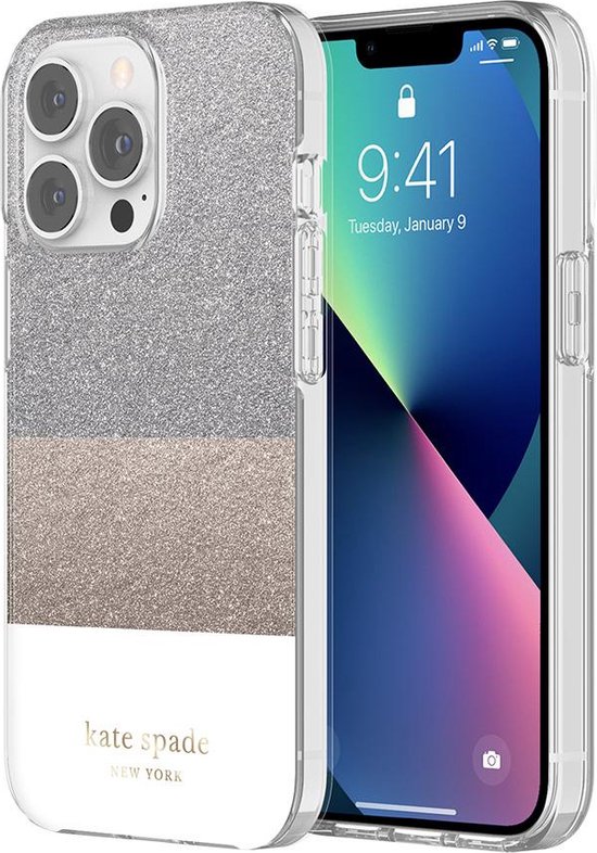 Kate Spade New York Beschermende Hardshell Case voor iPhone 13 Pro – Park Stripe/White/Iridescent/Clear