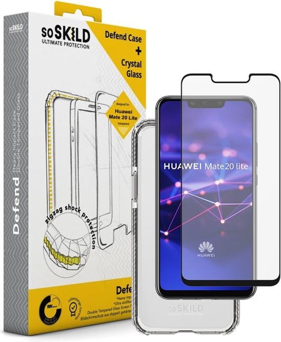 SoSkild Huawei Mate 20 Lite Defend Heavy Impact Case Transparent and Tempered Glass (black)