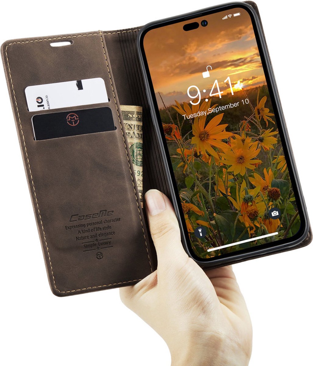 Caseme – Bookcase Bruin – Apple Iphone 14 Pro Hoesje