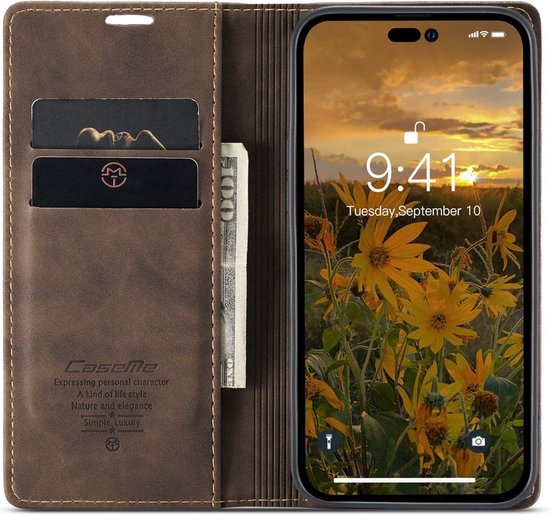 Caseme – Bookcase Bruin – Apple Iphone 14 Pro Max Hoesje