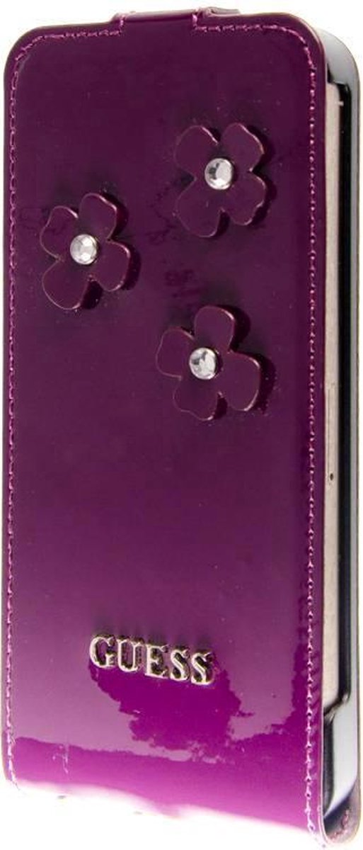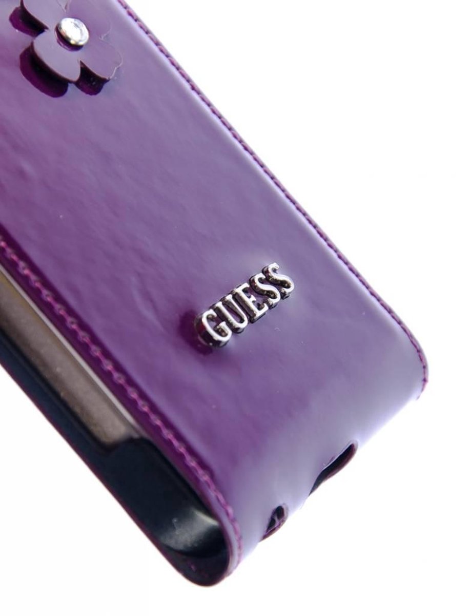 Het Guess logo staat in zilveren letters voorop. De iPhone 5/5S klikt eenvoudig vast in de case geïntegreerde kunststof houder, waarna de case eenvoudig dicht te ‘flippen’ is. Doordat de iPhone vrijwel helemaal vrij is terwijl deze in de case zit, blijven het scherm en alle toetsen rondom de iPhone optimaal bereikbaar. Ook voor de camera is een uitsparing in de case gemaakt.