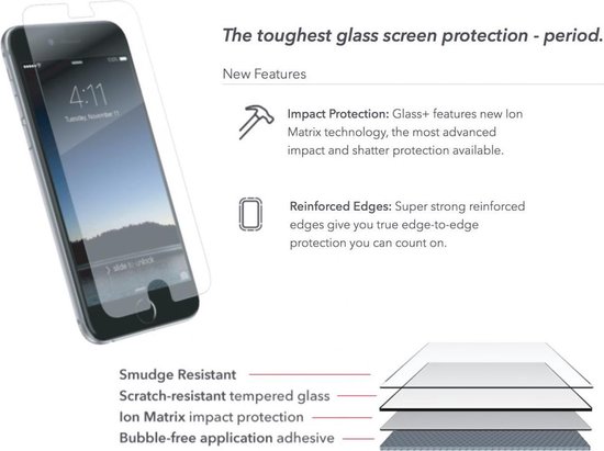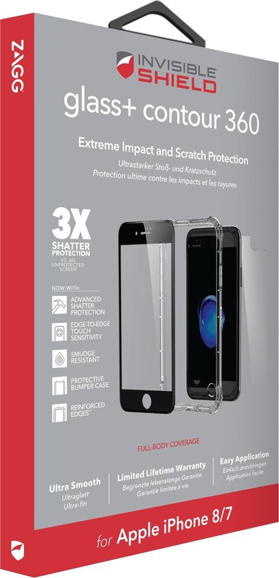 De InvisibleSHIELD Glass+ Tempered Glass is een screen protector van hoge kwaliteit. InvisibleSHIELD Glass+ Screen Protectors komen met levenslange garantie, bieden extra bescherming tegen vallen en zijn vuilbestendig. Daarnaast is de screen protectie om makkelijk in gebruik te nemen dankzij de unieke ‘EZ Apply’ methode. Dit alles samen maakt de InvisibleSHIELD Glass+ Tempered Glass een van de beste screen protectors voor uw Apple iPhone 7 / 8, die drie keer zo bestendig is tegen barsten als het glas van uw smartphone. Deze screen protector wordt met een hoesje geleverd, zodat ook uw smartphone beschermd is.