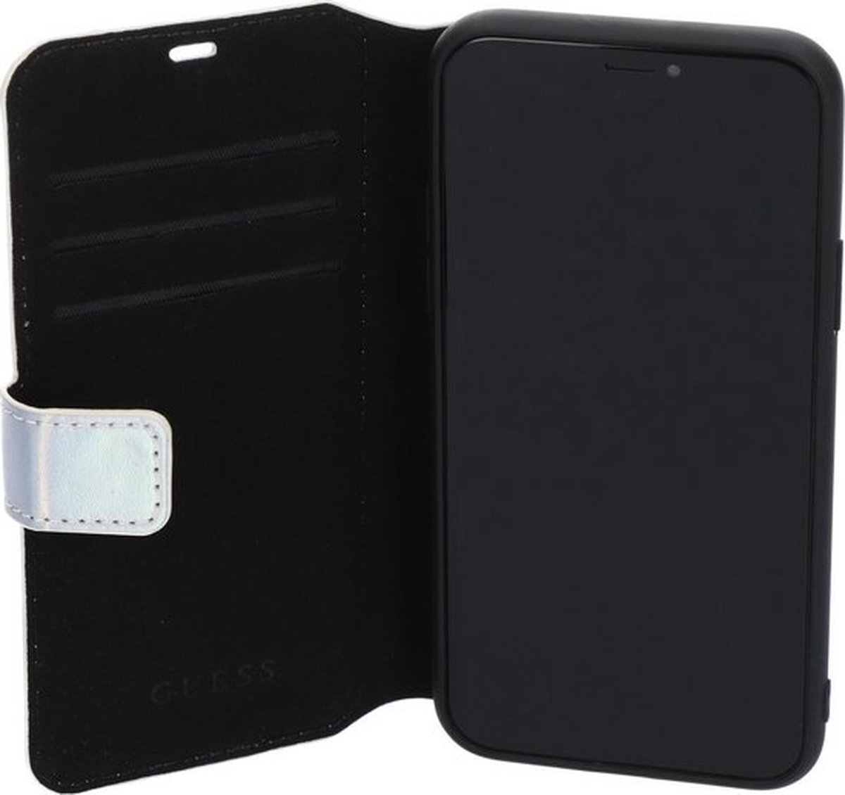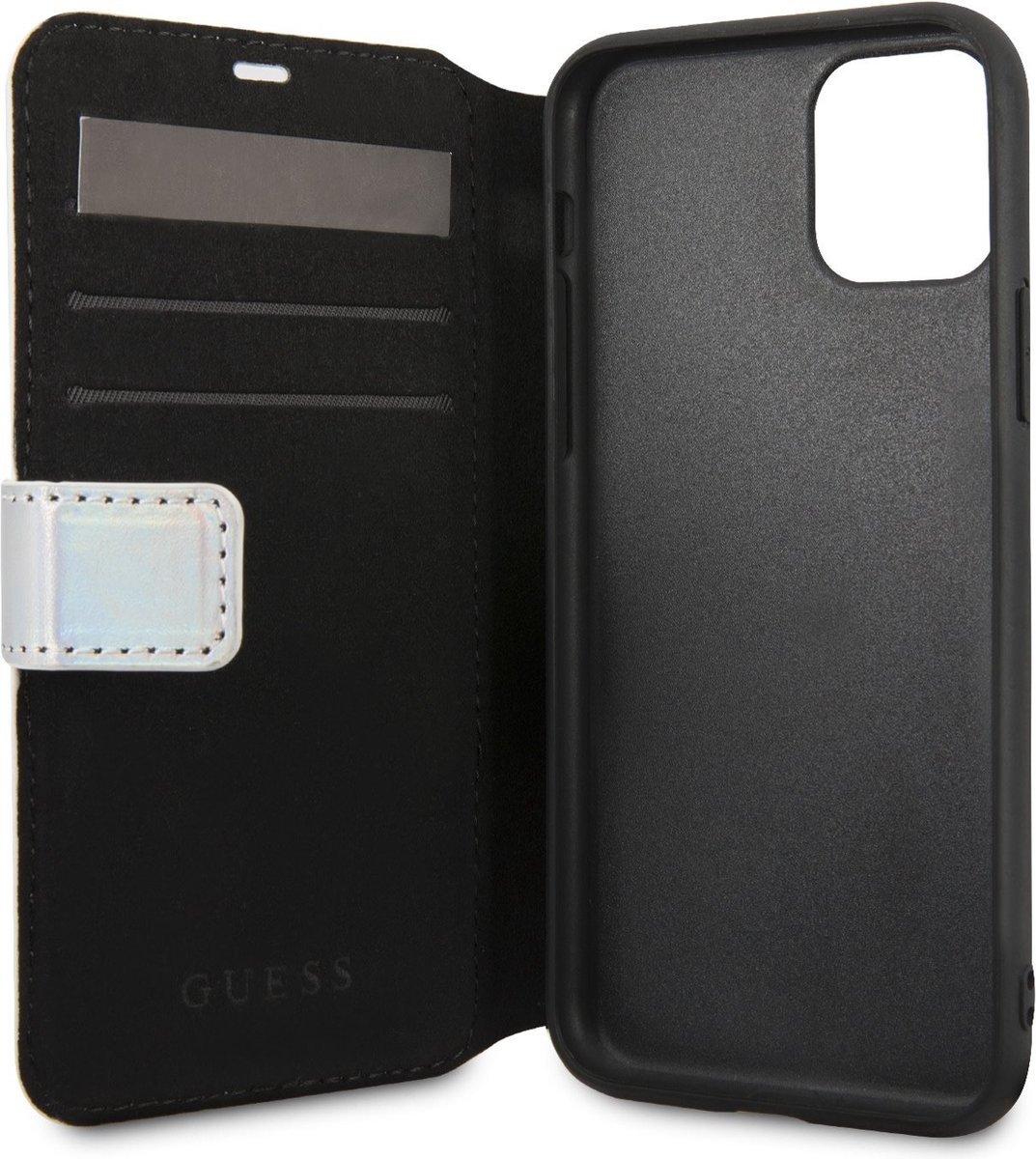 iPhone 11 Pro Bookcase hoesje – Guess – Effen Zilver – Kunstleer