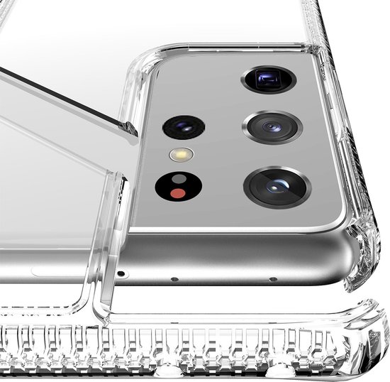 Een strak en stijlvol uiterlijk voor jouw Samsung Galaxy S21 Ultra bereik je moeiteloos met deze Hybrid Clear Backcover! Het hoesje is gemaakt van stevig kunststof materiaal en heeft flexibele, schokbestendige randen. De extra verstevigde hoeken zorgen ervoor dat de impact bij een val gemakkelijk wordt opgevangen. Het hoesje voldoet aan militaire valtestnormen en heeft verhoogde randen die het display beschermen!