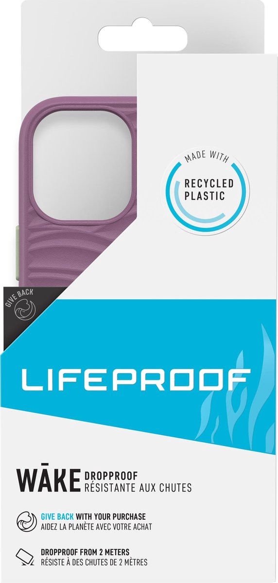 De LifeProof WĀKE serie biedt een duurzame oplossing om je smartphone te beschermen. Het hoesje biedt een goede bescherming en beschermt je telefoon tot een val van wel 2 meter. Het hoesje bestaat voor 85% uit gerecycled plastic uit de oceaan. Op de achterkant van het hoesje is een zacht golfpatroon te vinden, dit verwijst naar de duurzaamheid en de oorsprong van het materiaal. Naast het duurzame hoesje is er ook gebruik gemaakt van een recyclable verpakking en doneert LifeProof ook nog een deel van de aankoop aan goede doelen voor de oceaan.