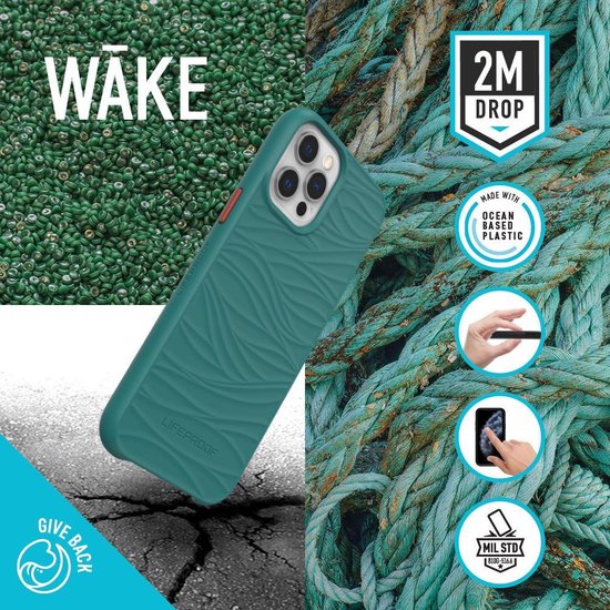 De LifeProof WĀKE serie biedt een duurzame oplossing om je smartphone te beschermen. Het hoesje biedt een goede bescherming en beschermt je telefoon tot een val van wel 2 meter. Het hoesje bestaat voor 85% uit gerecycled plastic uit de oceaan. Op de achterkant van het hoesje is een zacht golfpatroon te vinden, dit verwijst naar de duurzaamheid en de oorsprong van het materiaal. Naast het duurzame hoesje is er ook gebruik gemaakt van een recyclable verpakking en doneert LifeProof ook nog een deel van de aankoop aan goede doelen voor de oceaan.
