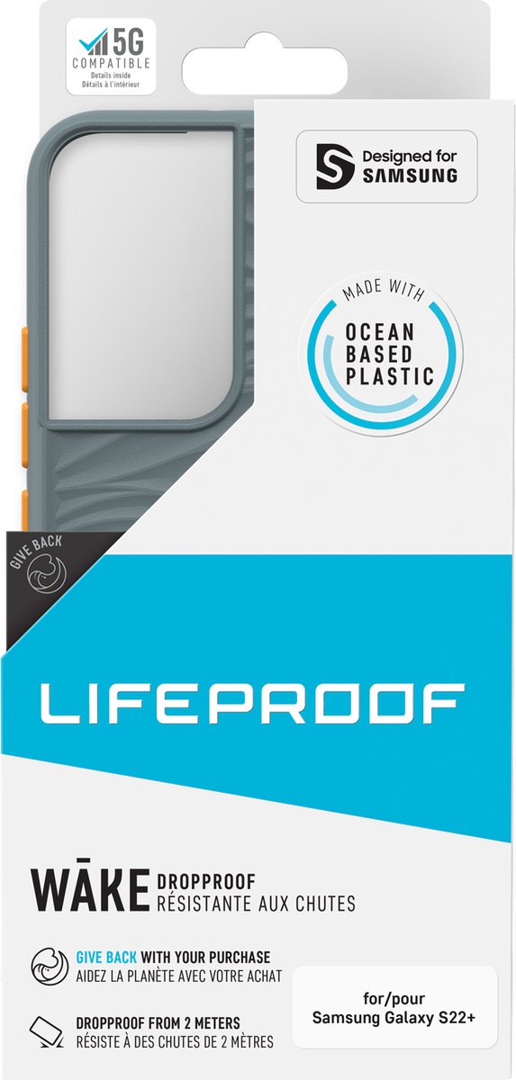 De LifeProof Wake is een duurzaam hoesje dat voor 85% bestaat uit gerecycled plastic uit de oceaan, zoals oude visnetten. Dankzij valbescherming tot 2 meter hoogte is je Samsung Galaxy S22 Plus beschermd tegen vallen tot deze hoogte. Door de verstevigde randen met verhogingen is het display beschermd tegen krassen en slijtage wanneer je jouw telefoon vlak neerlegt.