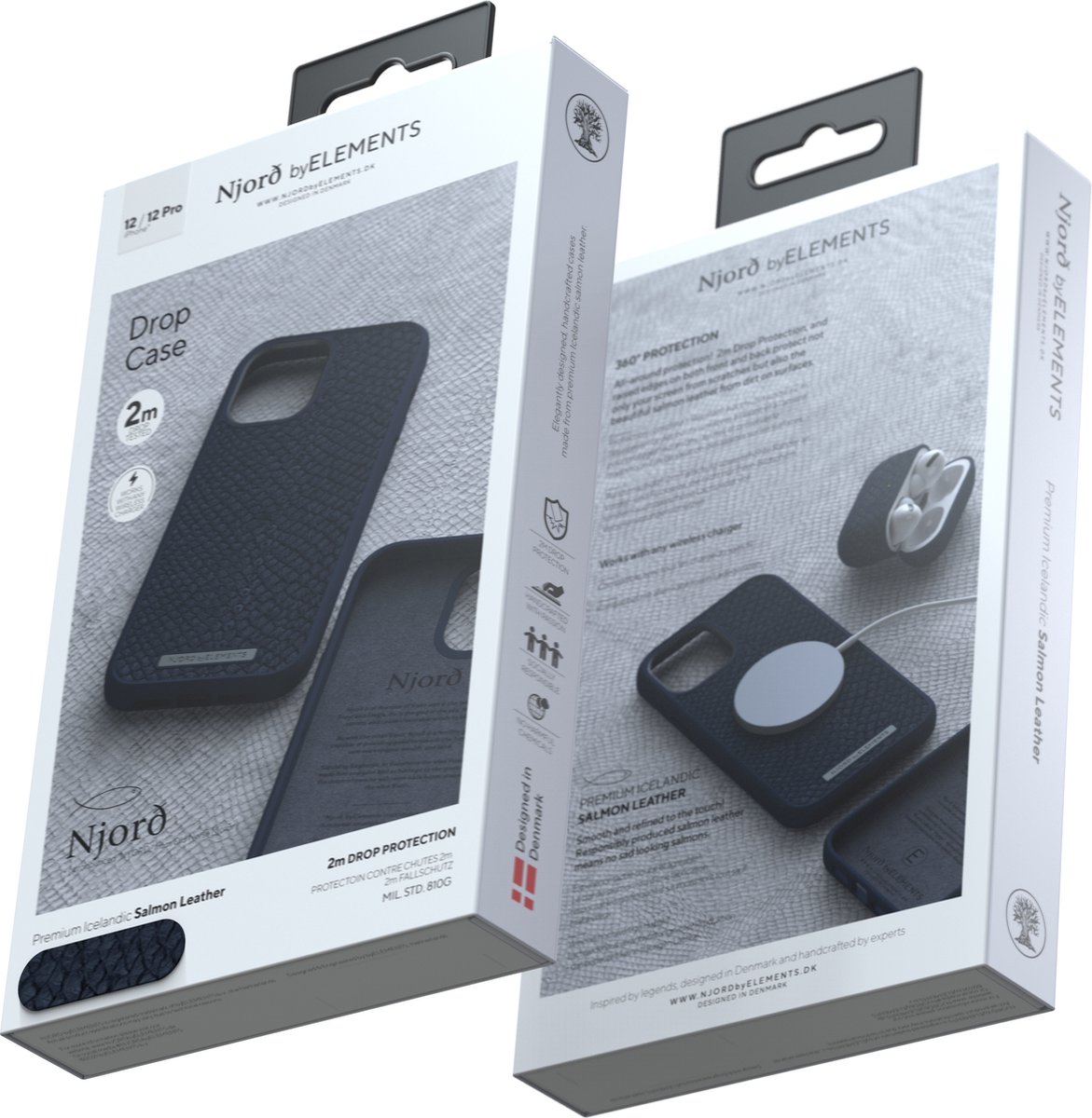 Njord byELEMENTS iPhone 12/12 Pro hoesje – Zalm Leder Case – Blauw