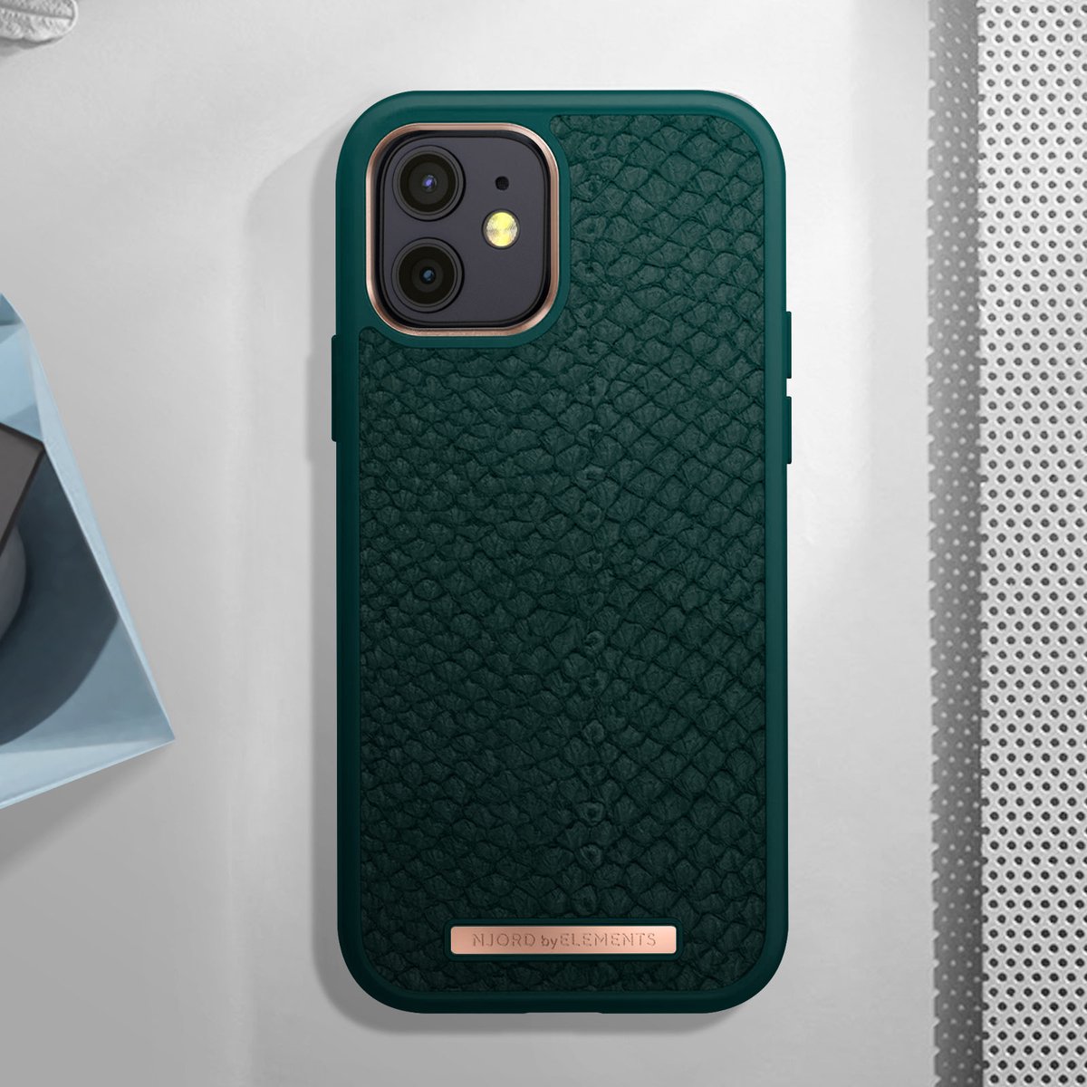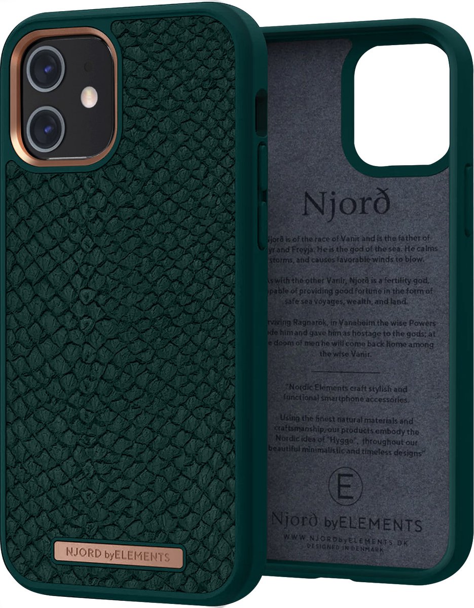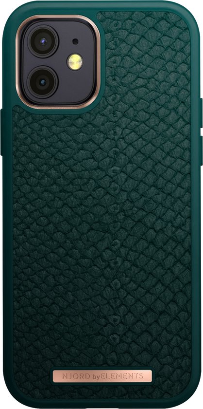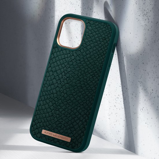 Njord byELEMENTS iPhone 12 Mini hoesje – Back Cover Telefoonhoesje van zalmleer – Groen