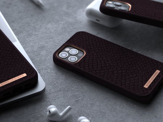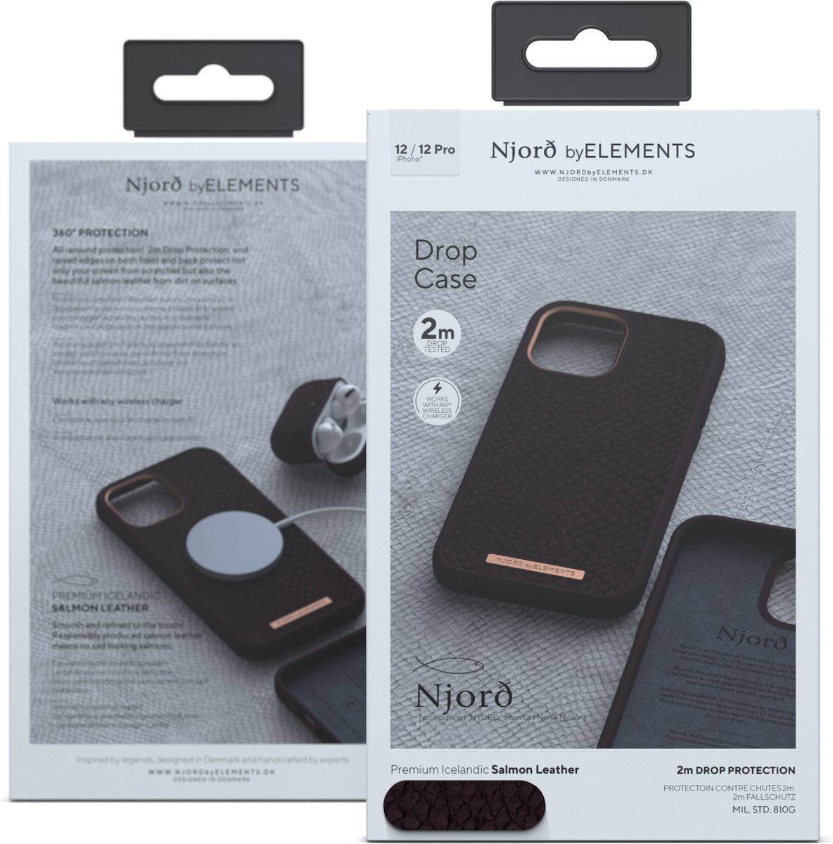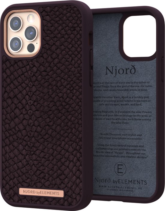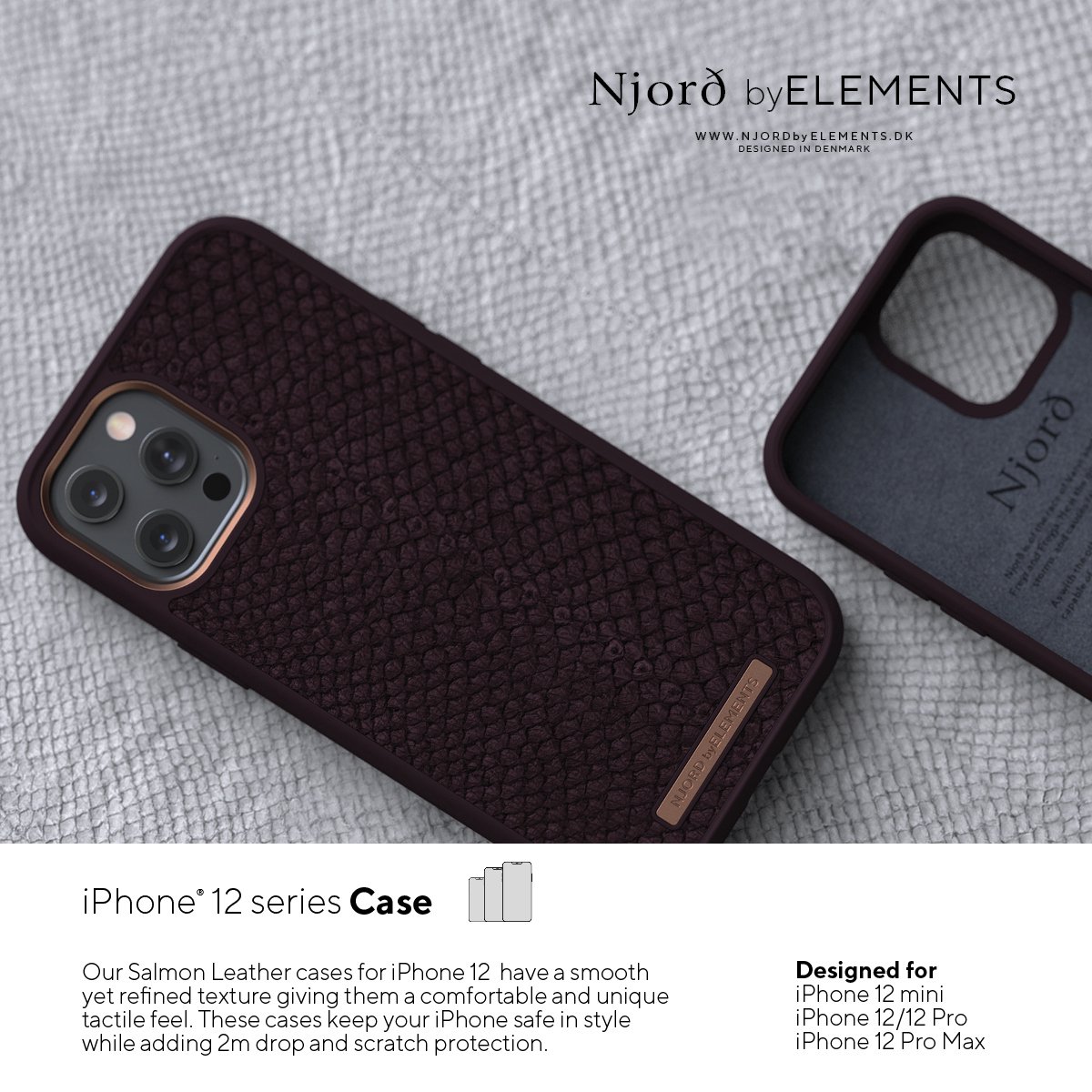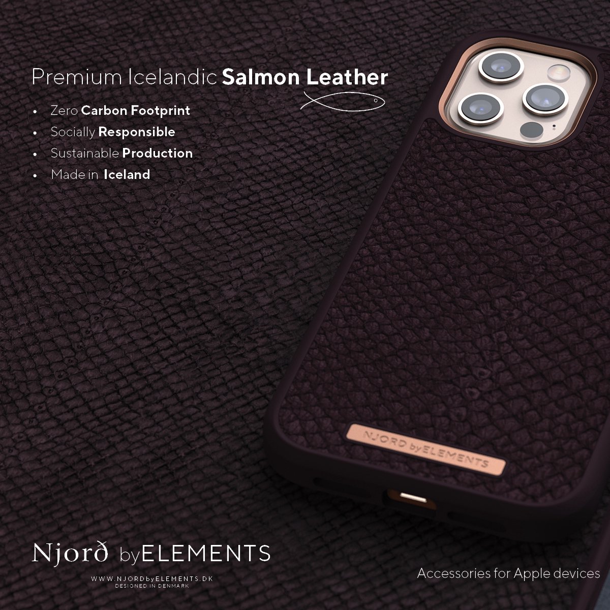 Njord ByELEMENTS Apple iPhone 12 Mini hoesje – Salmon Leather Case – 100% gerecycled materiaal – Iconisch design – Ultra dun – Paars