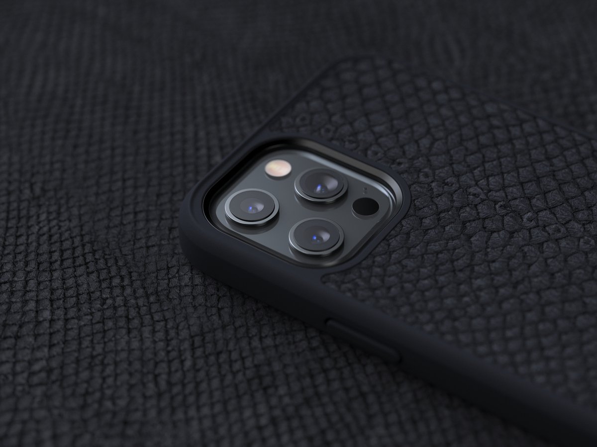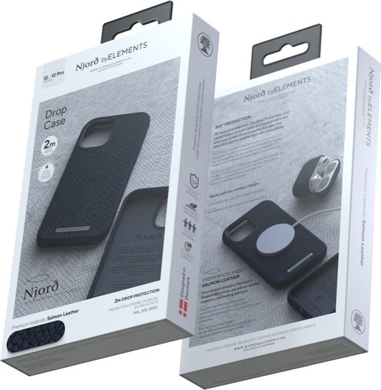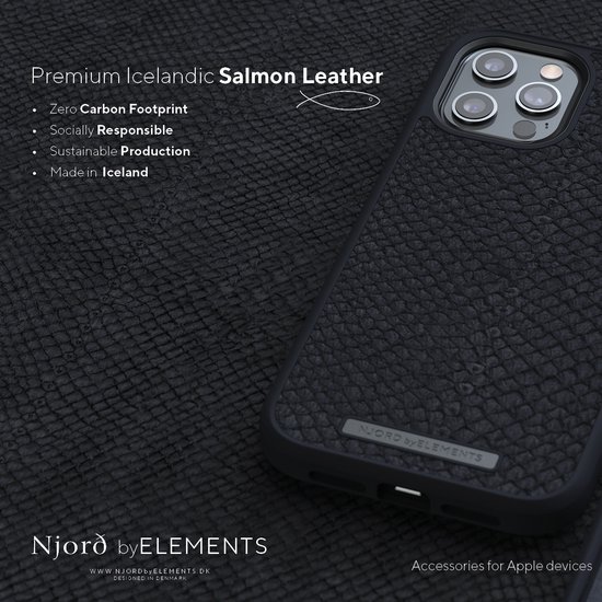 Njord ByELEMENTS Apple iPhone 12 Pro Max hoesje – Salmon Leather Case – 100% gerecycled materiaal – Iconisch design – Ultra dun – Donkergrijs