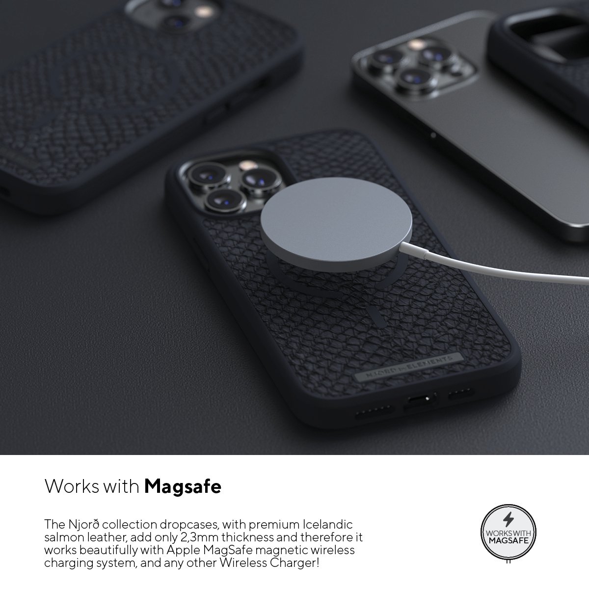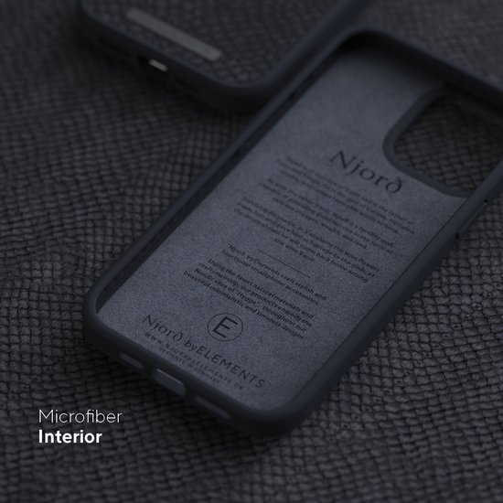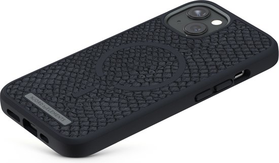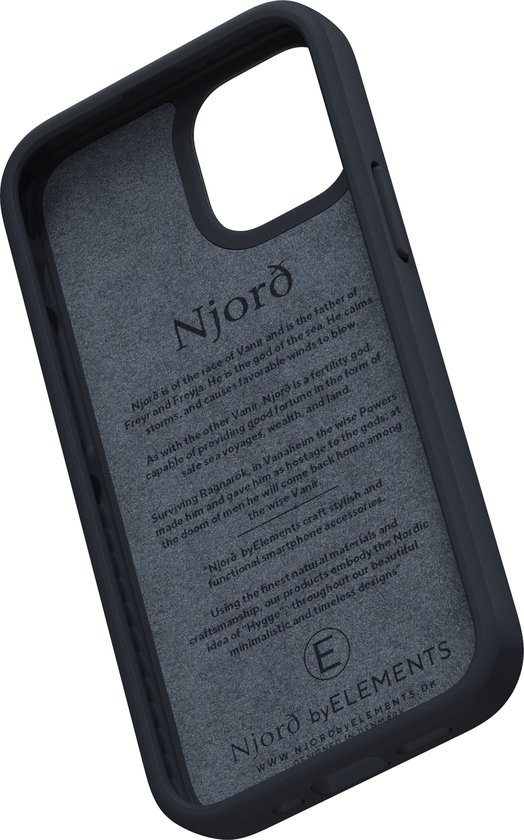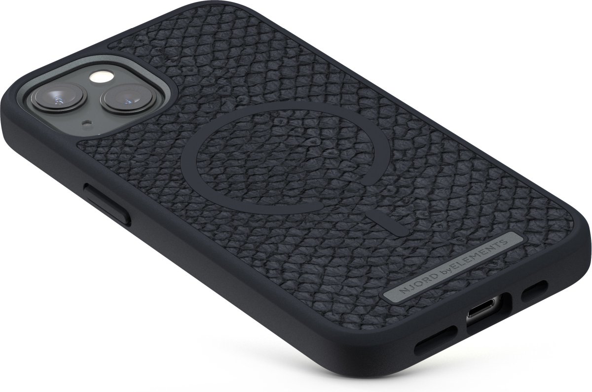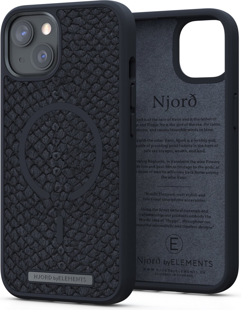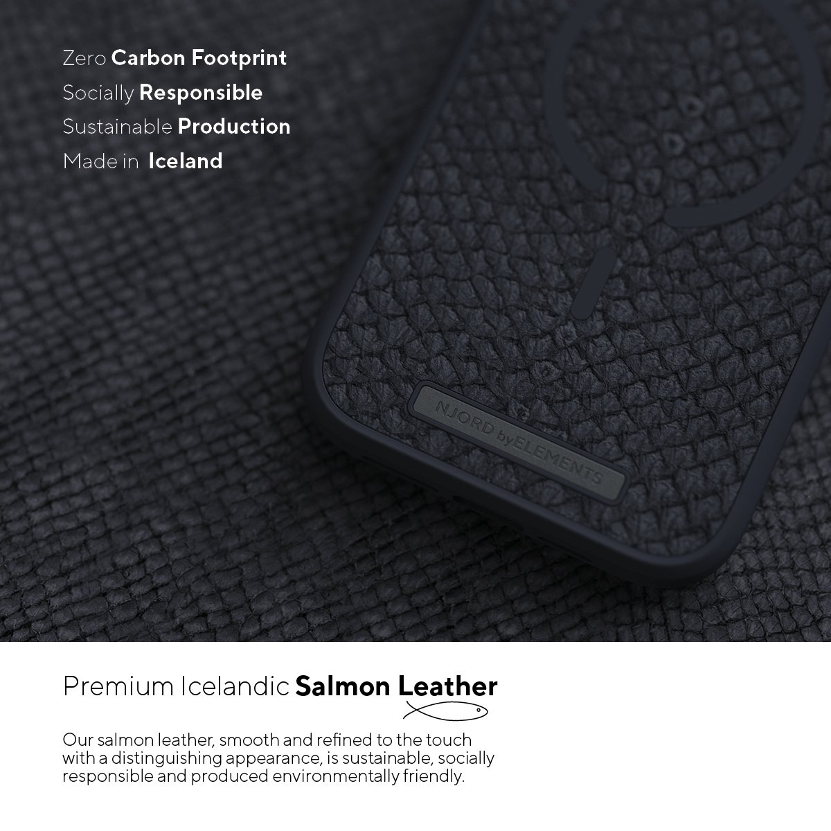 Njord ByELEMENTS Apple iPhone 13 Mini hoesje – Salmon Leather Case – 100% gerecycled materiaal – Iconisch design – Ultra dun – Donkergrijs