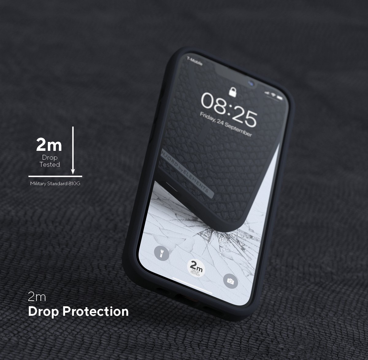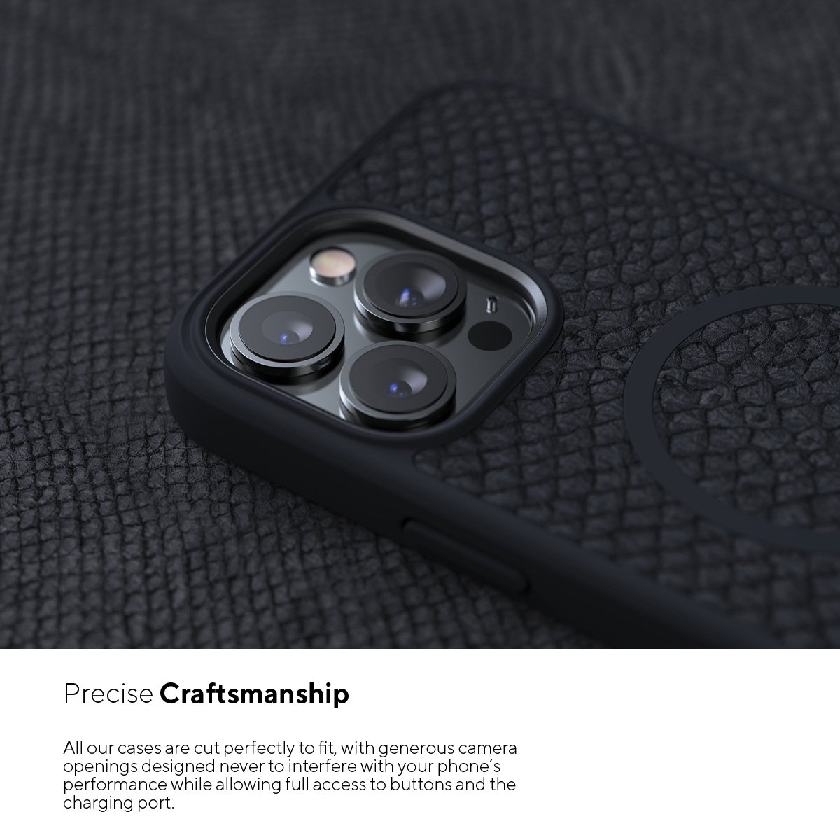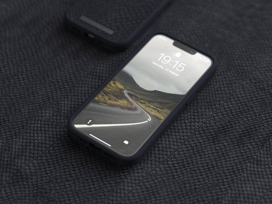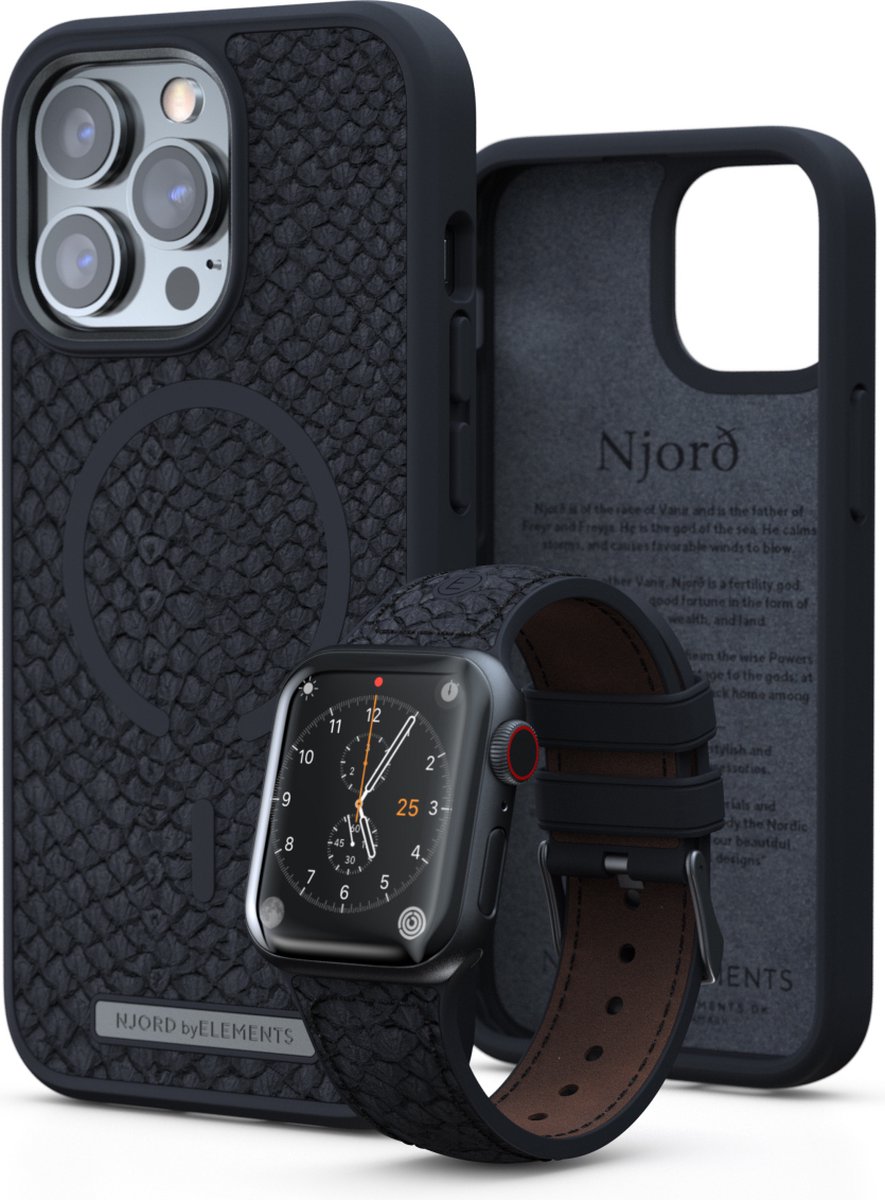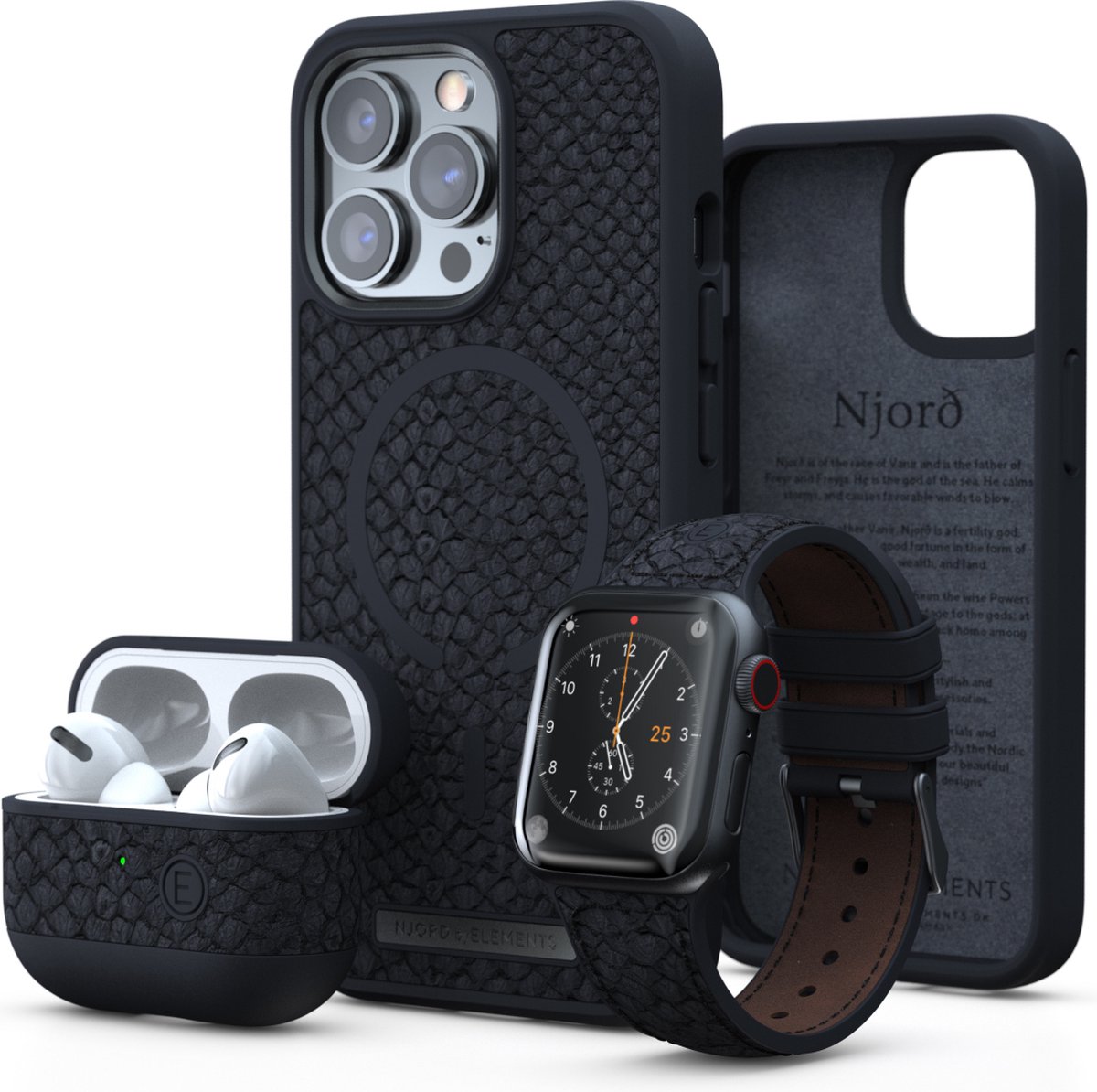 Njord ByELEMENTS Apple iPhone 13 Mini hoesje – Salmon Leather Case – 100% gerecycled materiaal – Iconisch design – Ultra dun – Donkergrijs