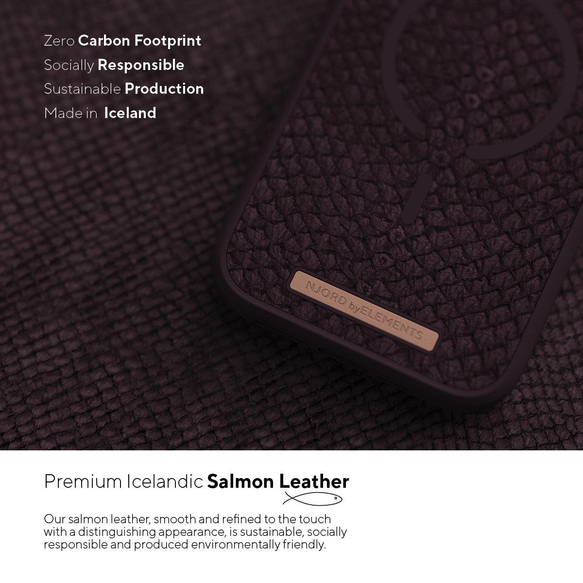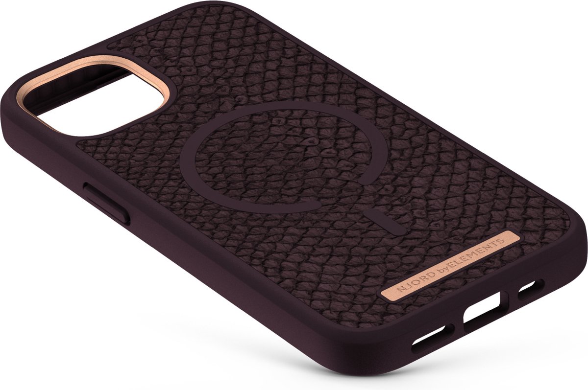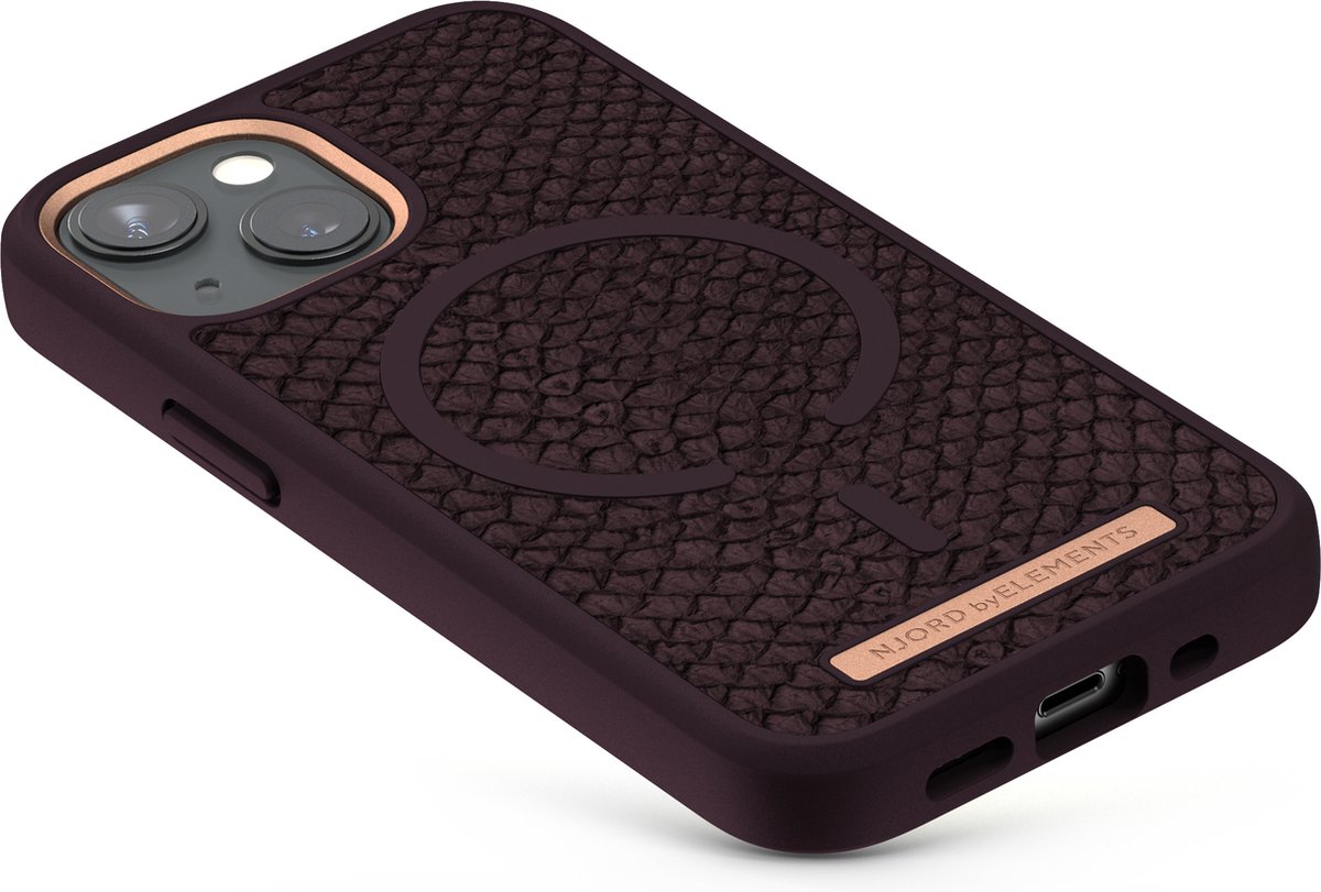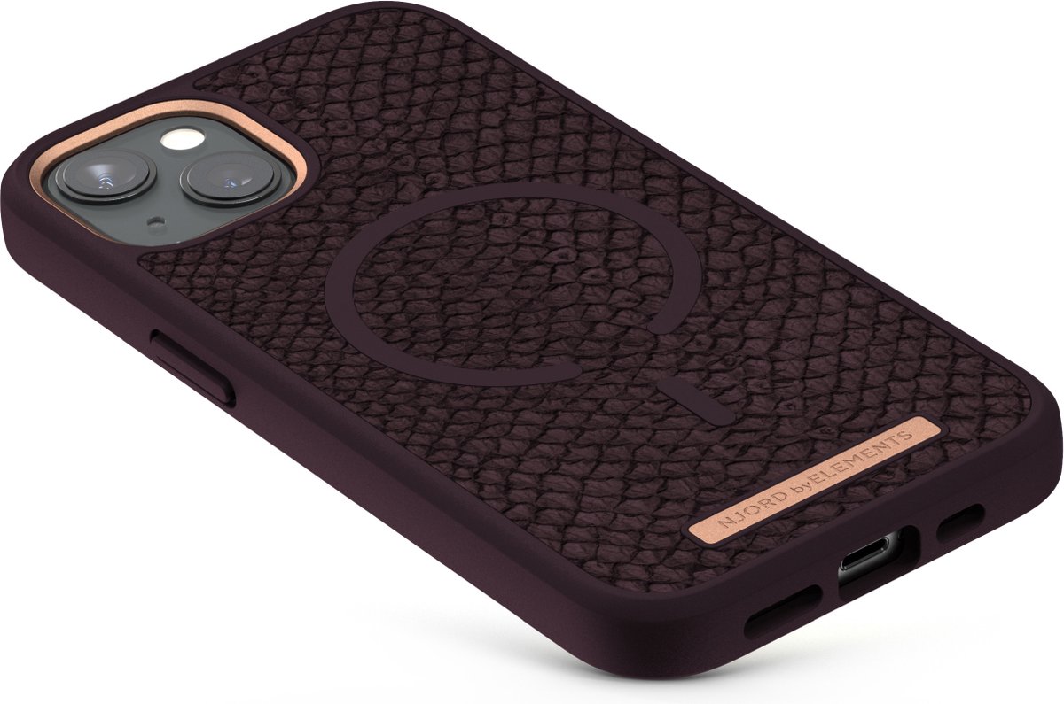 Njord ByELEMENTS Apple iPhone 13 Mini hoesje – Salmon Leather Case – 100% gerecycled materiaal – Iconisch design – Ultra dun – Paars