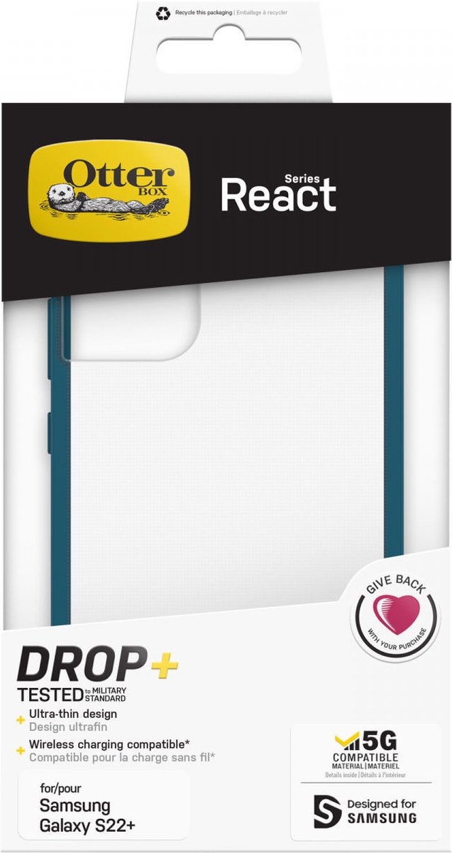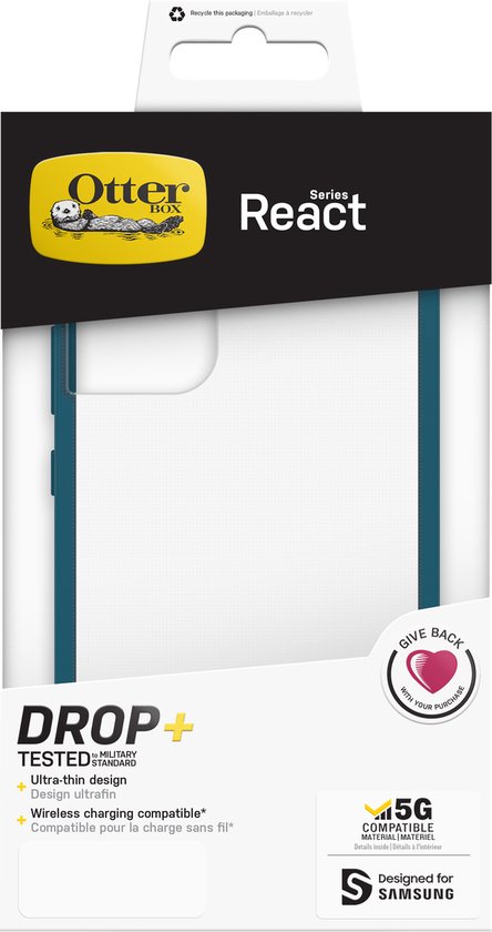 Productbeschrijving De Otterbox React Serie is een ultradunne, veerkrachtige OtterBox-hoes die je Samsung Galaxy S22 Plus beschermt tegen: druppels en krassen. De solide vorm uit één stuk is nauwkeurig ontworpen voor je telefoon en de soft touch randen zorgen voor een goede grip. Het hoesje is eenvoudig op je Samsung Galaxy S22 Plus te installeren en het glijdt naadloos in en uit zakken. OtterBox staat bekend om zijn geweldige klantondersteuning en toonaangevende garantie. Wikkel je telefoon in de vertrouwde bescherming van de React serie.