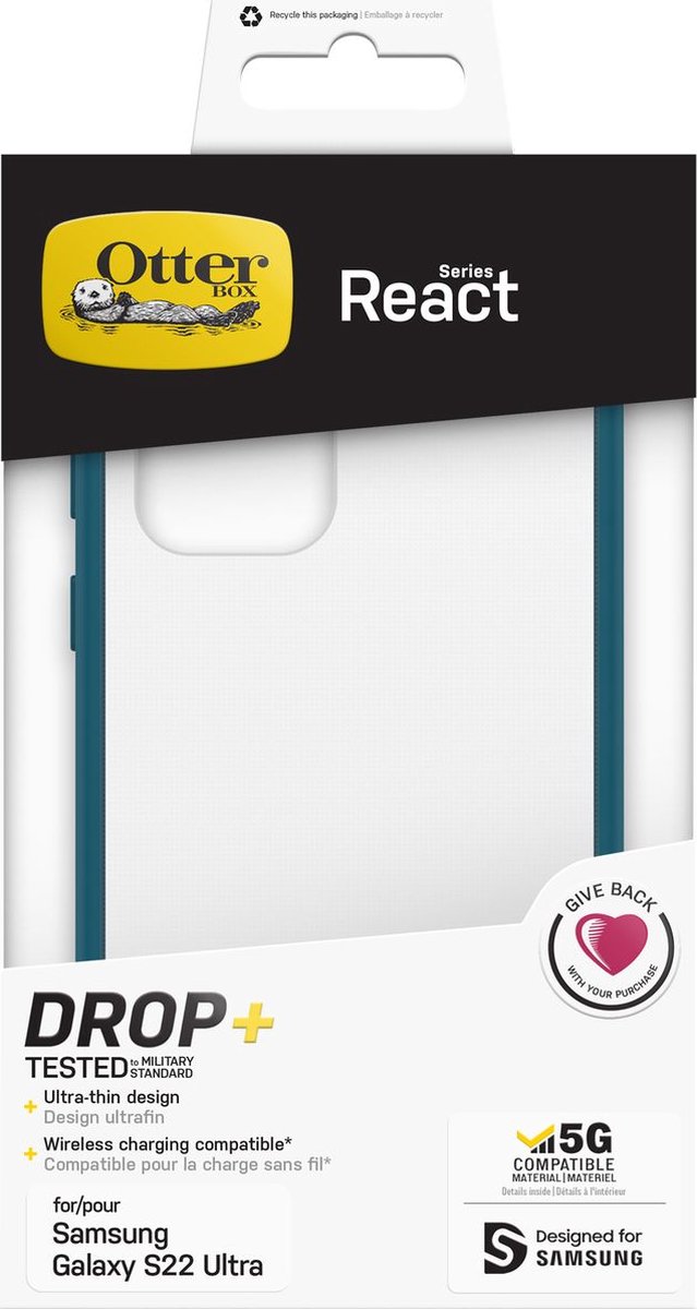 De Otterbox React Serie is een ultradunne, veerkrachtige OtterBox-hoes die je Samsung Galaxy S22 Ultra beschermt tegen: druppels en krassen. De solide vorm uit één stuk is nauwkeurig ontworpen voor je telefoon en de soft touch randen zorgen voor een goede grip. Het hoesje is eenvoudig op je Samsung Galaxy S22 Ultra te installeren en het glijdt naadloos in en uit zakken. OtterBox staat bekend om zijn geweldige klantondersteuning en toonaangevende garantie. Wikkel je telefoon in de vertrouwde bescherming van de React serie.