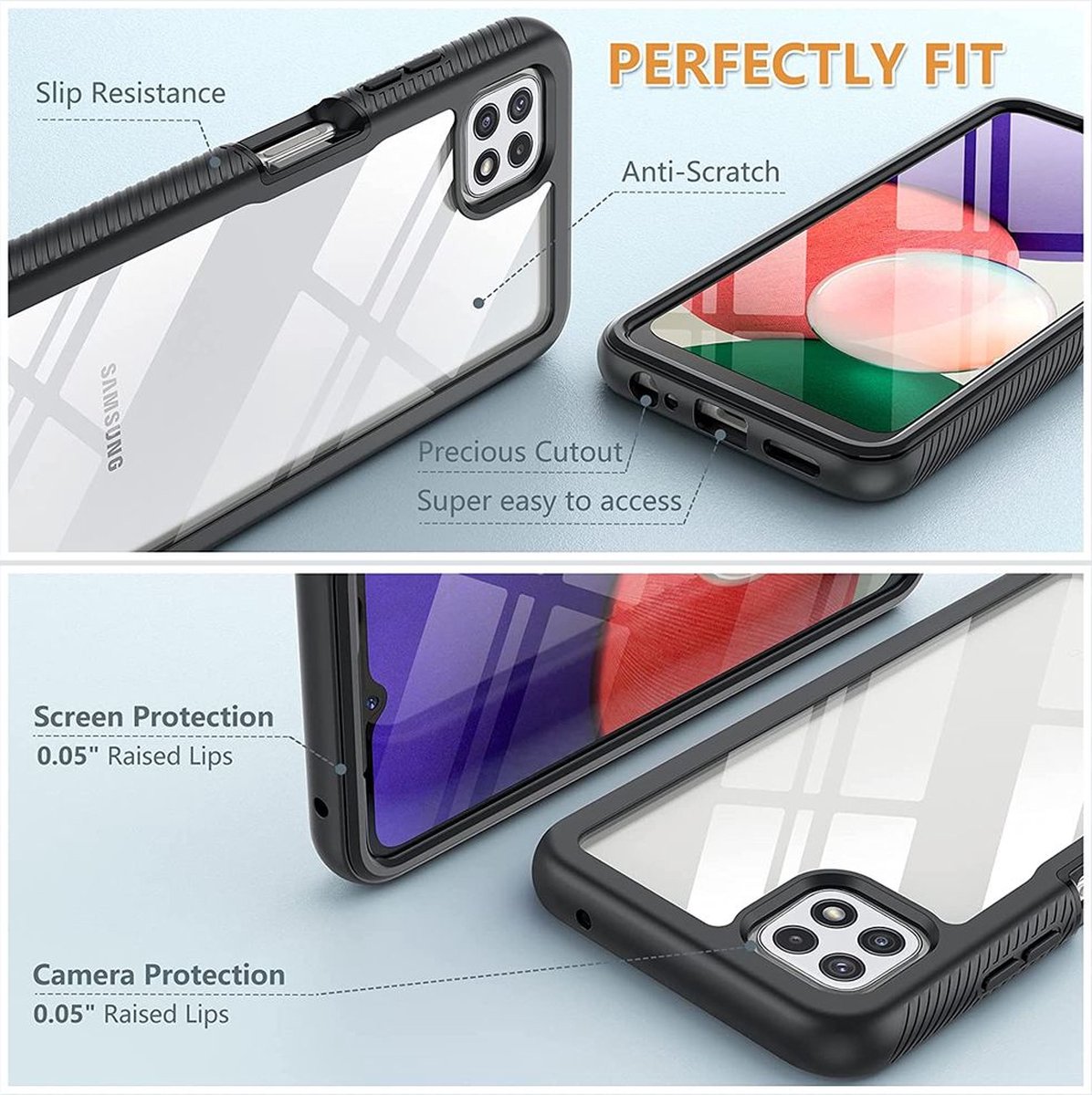 Samsung Galaxy A22 5G Rugged Case hoesje – Just in Case – Effen Zwart – Kunststof