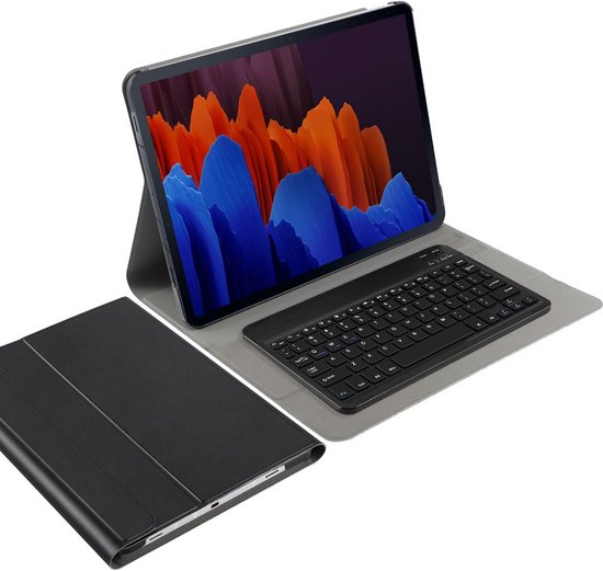 Samsung Galaxy Tab S7+ Toetsenbord Hoes hoesje – Just in Case – Effen Zwart – Kunstleer