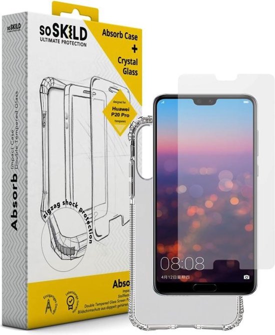 SoSkild Huawei P20 Pro Absorb Impact Case Transparent and Tempered Glass Transparent
