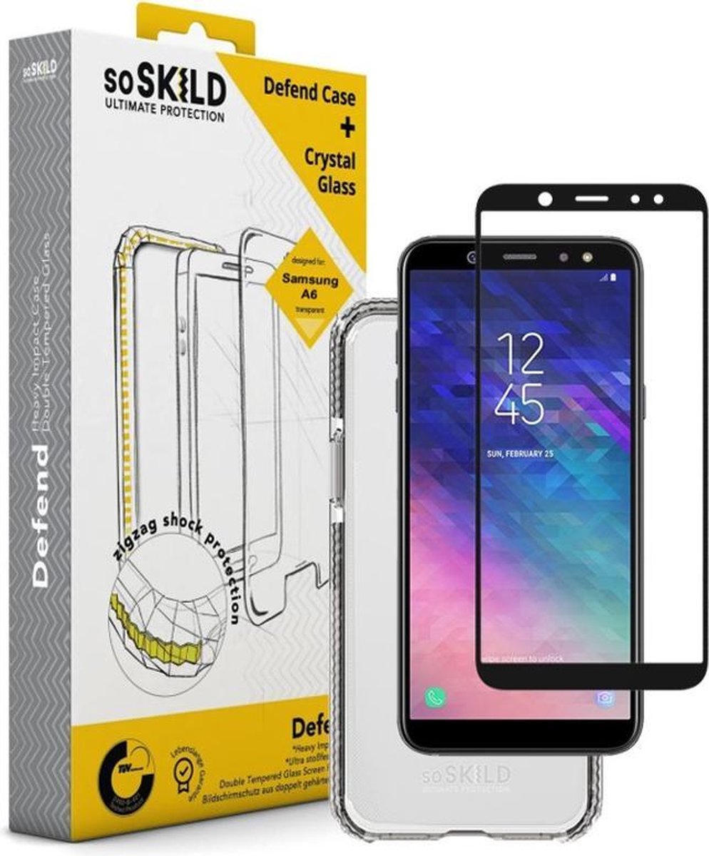 Deze combipack bevat een Defend Heavy Impact Case en een Tempered Glass voor jouw Samsung Galaxy A6. De Defend case biedt uitstekende bescherming voor jouw Samsung Galaxy A6 en zet het design van je telefoon op de eerste plaats. De case heeft slanke en onopvallende uitstraling waarbij de randen zijn voorzien van Zigzag Structuur®. Het materiaal van deze case is van een harder type rubber dat de impact van een val absorbeert, vandaar de ‘Defend’. De hoeken van de case hebben speciale ‘diamond shaped corners’. Deze hoeken bestaan uit meerdere platte vlakken waardoor de kans op stuiteren en dus valschade wordt verminderd. In dit product zie je overal de filosofie van SoSkild terug: ultieme bescherming door structuur. Tevens beschikken alle cases van SoSkild over een levenslange garantieregeling.