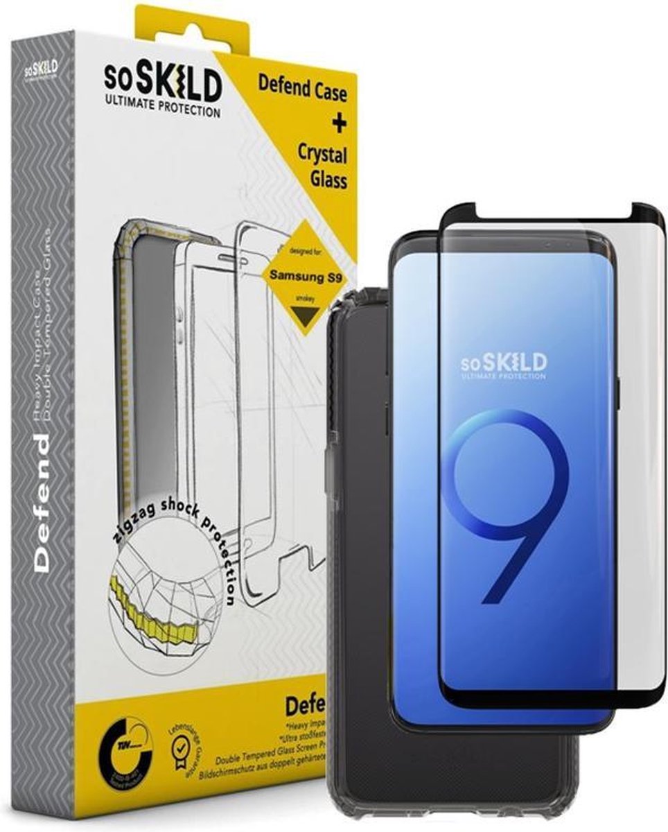SoSkild Samsung Galaxy S9 Defend Heavy Impact Case Smokey Grey and Tempered Glass Transparent